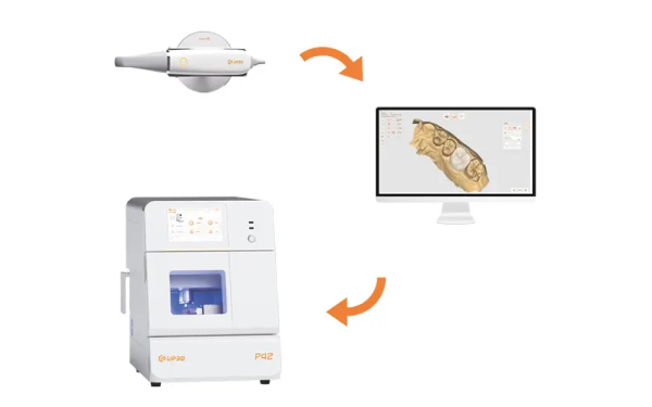 La fraiseuse dentaire P42 traite 3 blocs de céramique ou 1 tige de titane. Son intégration logicielle et matérielle simplifie le flux de travail numérique, de la numérisation à l'usinage. Des fonctionnalités telles que le fraisage à l'eau pure et l'étalonnage automatique garantissent précision et qualité. Cette solution polyvalente et conviviale améliore considérablement l'efficacité.